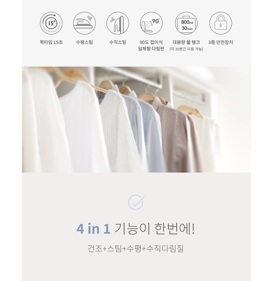 - 편의 기능: 옷걸이, 다림판, 바퀴, 살균 기능 등
