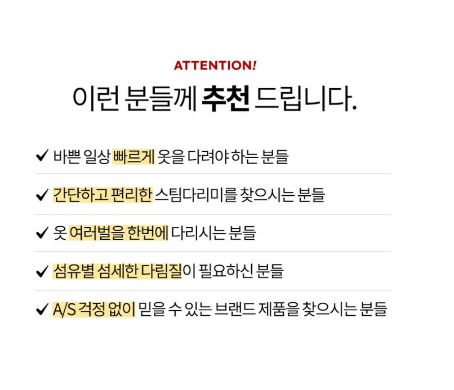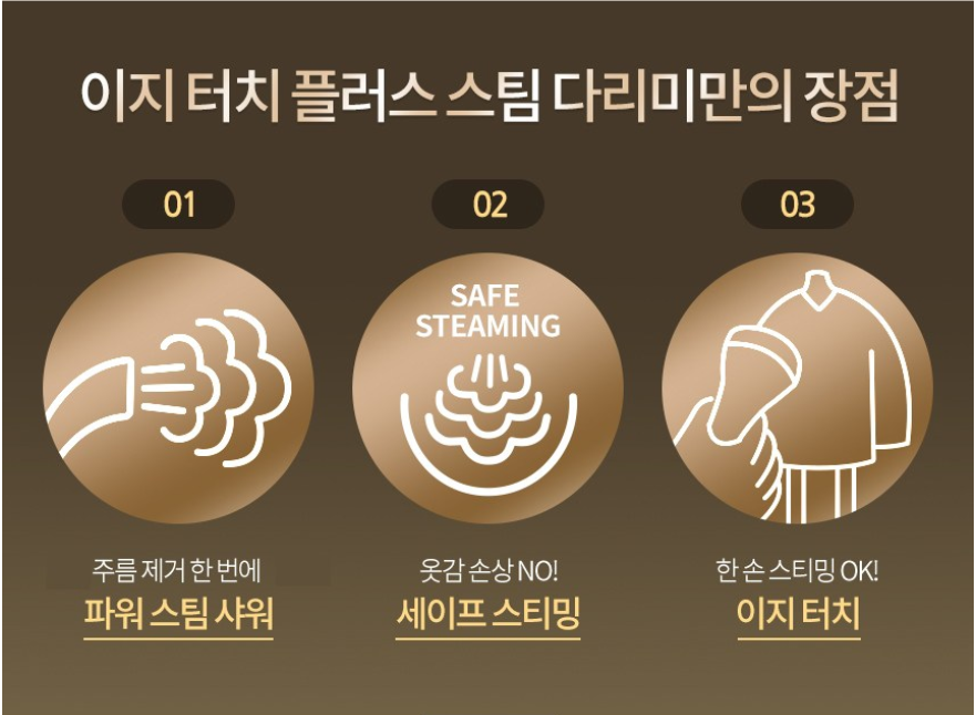 - 스팀 조절 단계: 옷감에 따라 스팀 세기를 바꿀 수 있으면 좋아요