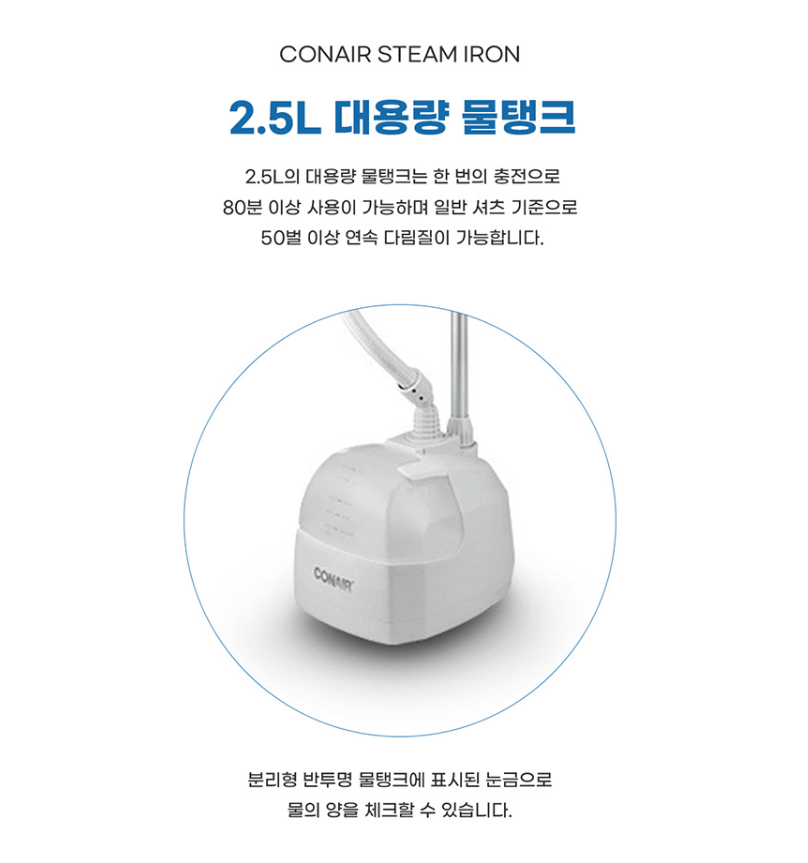 - 💡 2.5L 초대형 물탱크, 스팀 최대 80분