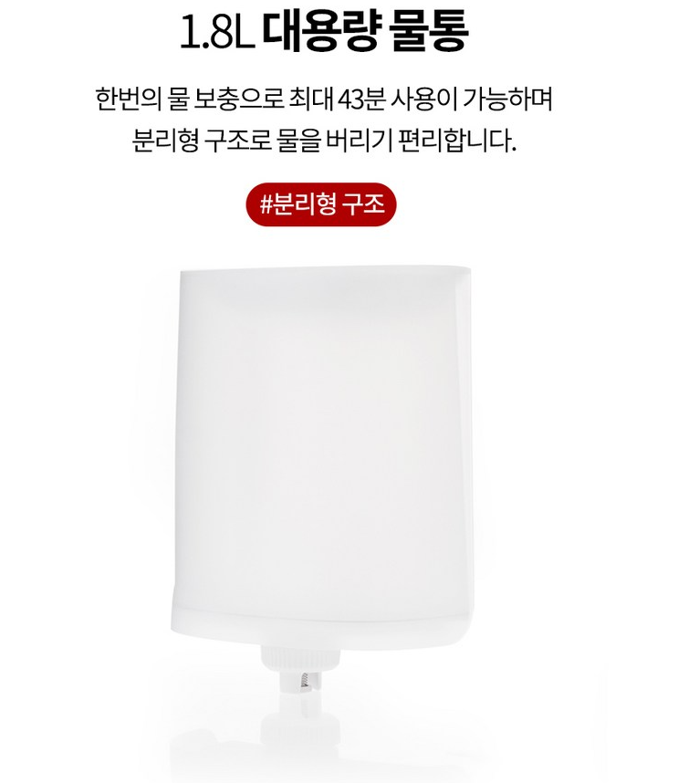 - 💡 1.8L 대용량 물탱크 + 6단계 스팀 조절