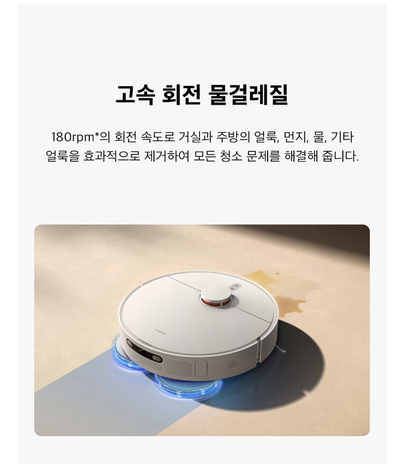 - 청소 방식: 듀얼 회전 물걸레 + 고출력 흡입