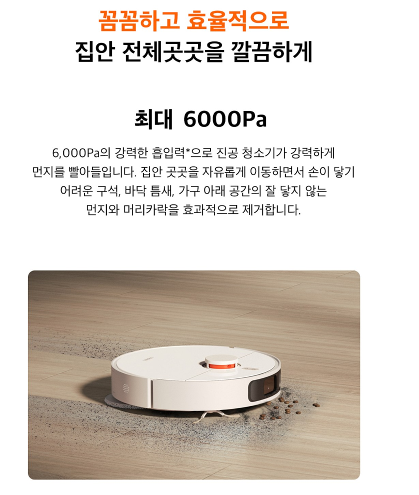 - 흡입력: 6000Pa