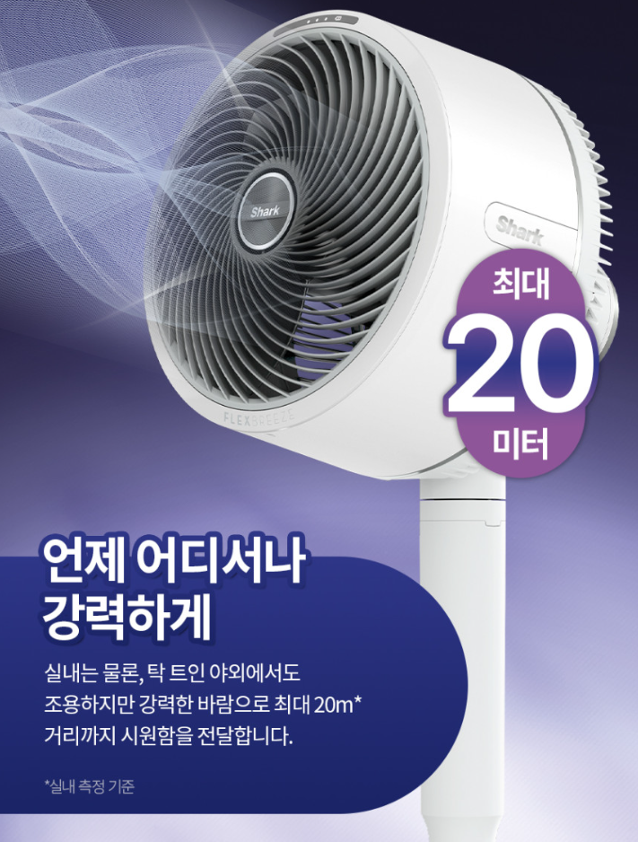 샤크 플렉스브리즈 FA200KR은 정숙한 소음, 강력한 풍량, 유무선 겸용의 편의성까지 모두 갖춘 프리미엄 선풍기입니다.